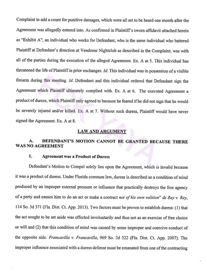 Prince was presented with an agreement drafted by Tory and told not to contact his lawyer (red flag). However, when Prince pushed back about wanting his lawyer to look over the document, Tory and his associate "aggressively ordered" Prince to sign the settlement. Prince complied out of fear.