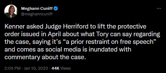 Oh and why would Tory's gag order need to be removed when he did not want to testify??? What can he say now from jail.